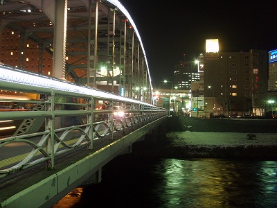 写真は、駅前の北上川にかかる開運橋ですが、川岸には白く雪が積もっていました。